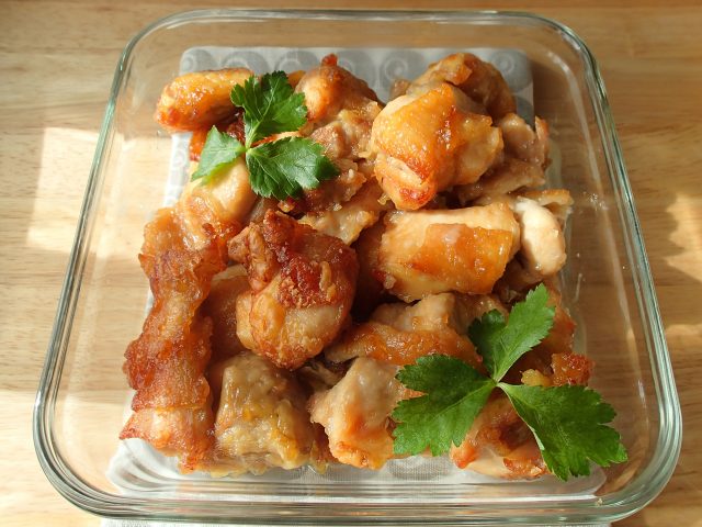オーブンを使うと、肉に含まれる油分だけでカラッと仕上がるだけでなく、